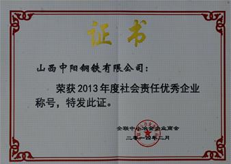 会上,公司还被全联冶金商会授予“2013年度社会责任优秀企业”称号。