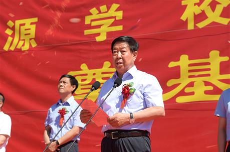 在这阳光高照、热气腾腾、党的生日之际,我们隆重举行钢源学校的奠基仪式,这是暨中阳医院复工之后的第二项工程,这项工程的启动,是落实政府工作报告中的第二项内容,这所学校建设早在十年前,前任政府就要在这里修学校,但由于种种原因没有启动,今天在县委、县政府的有力推动下终于动工啦,这所学校的建成对改变这一方环境、提高这一方的人文,意义十分重要。
