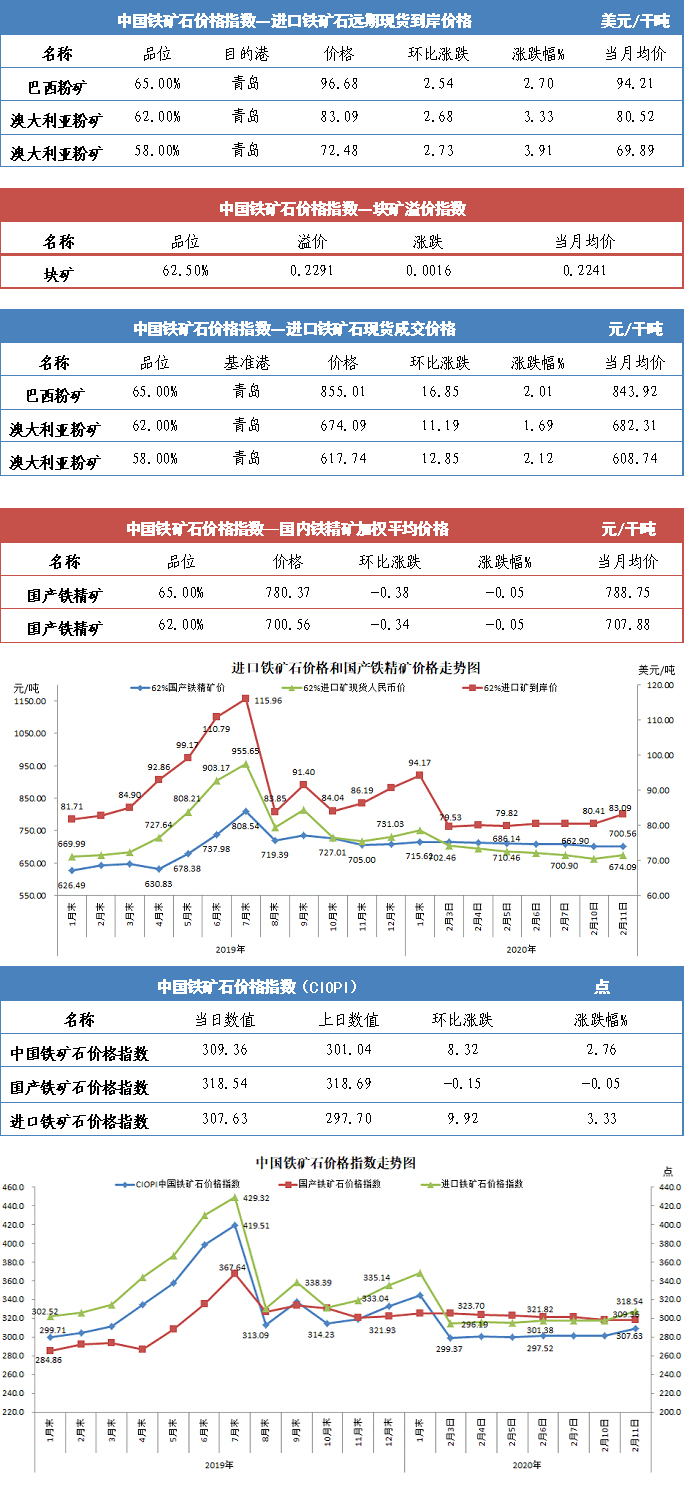 【行业指数】2月11日中国铁矿石价格指数