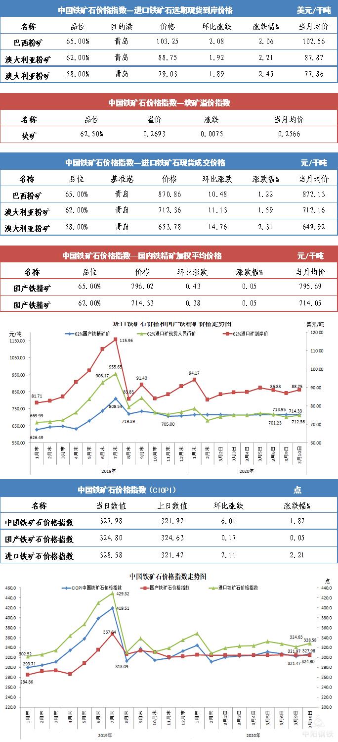 【行业指数】3月10日中国铁矿石价格指数