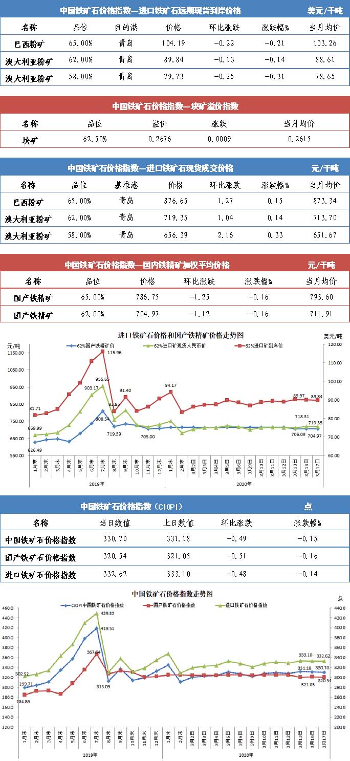 【行业指数】3月17日中国铁矿石价格指数