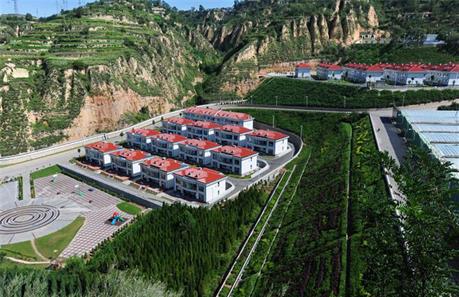 群山环抱中的村子,小别墅高层住宅错落有致,笔直柏油路、齐刷刷路灯、观景式蓄水池、蔬菜大棚、喷泉小广场……这是中阳县阳坡塔村。