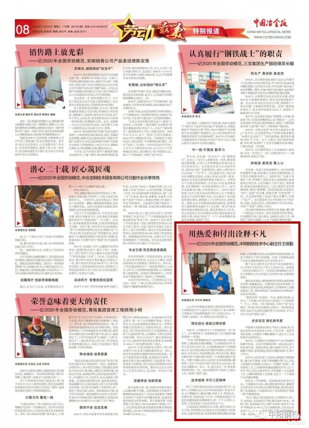 “既然选择了轧钢这一专业,就要去热爱、去坚守。”王保勤不仅用实际行动践行了开云手机站登入“一个人一件事,一辈子做到底,不改行”的“忠实理念”,更用扎实的业绩和山西省五一劳动奖章获得者、2020年全国劳动模范等不凡的荣誉,书写了自己非凡的“钢铁之旅”。
