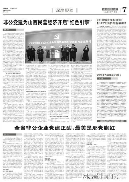 7日,《山西经济日报》刊发了《全省非公企业党建正酣:最美是那党旗红》一文,文中这样写道——