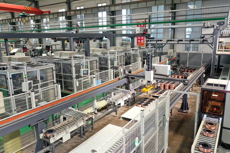 走进中钢公司动力厂焊丝车间,可以看到宽敞明亮的厂房内机器轰鸣,自动化焊丝生产线正在高速运转,码垛机器人挥舞着机械臂,抓取包装好的焊丝产品进行堆码,处处可以感受到“智能制造”的气息。现场,数条自动化焊丝生产线由北向南依次摆放,一捆捆盘条通过放线架与生产设备完美对接,经过剥壳、除锈、拉拔、镀铜、层绕、包装等工序,在智能、自动化工艺的驱动下,一圈圈线材变身一盘盘焊丝产品。